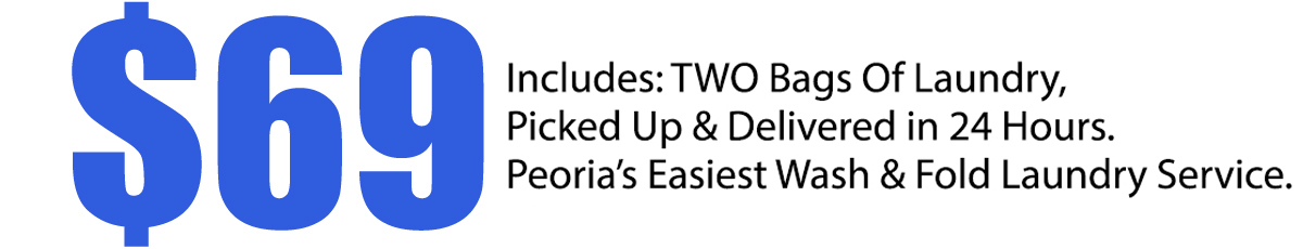 Includes: TWO Bags Of Laundry, Picked Up & Delivered in 24 Hours.Peoria’s Easiest Wash & Fold Laundry Service.